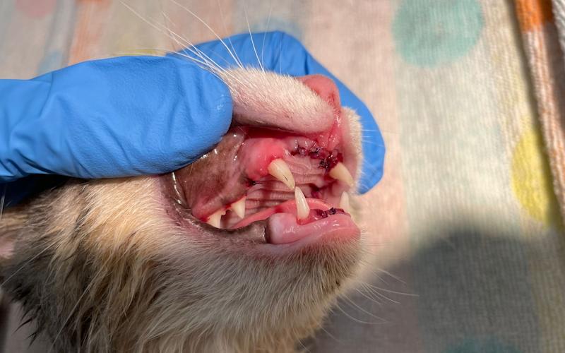 Nur eine Operation, bei der die Entfernung der 6 unteren Schneidezähne ansteht, wird die süße Maus von ihrer Zahnfleischentzündung und den Schmerzen befreien können.
