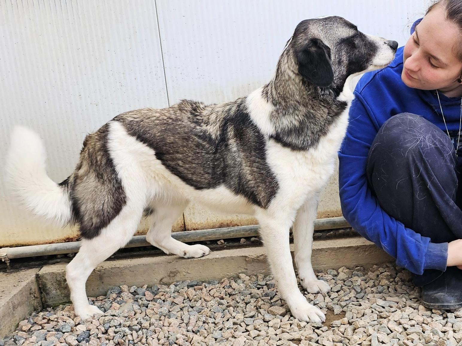 Nun sucht der vorsichtige Rüde bei einer geduldigen Frau endlich ein liebevolles Zuhause.