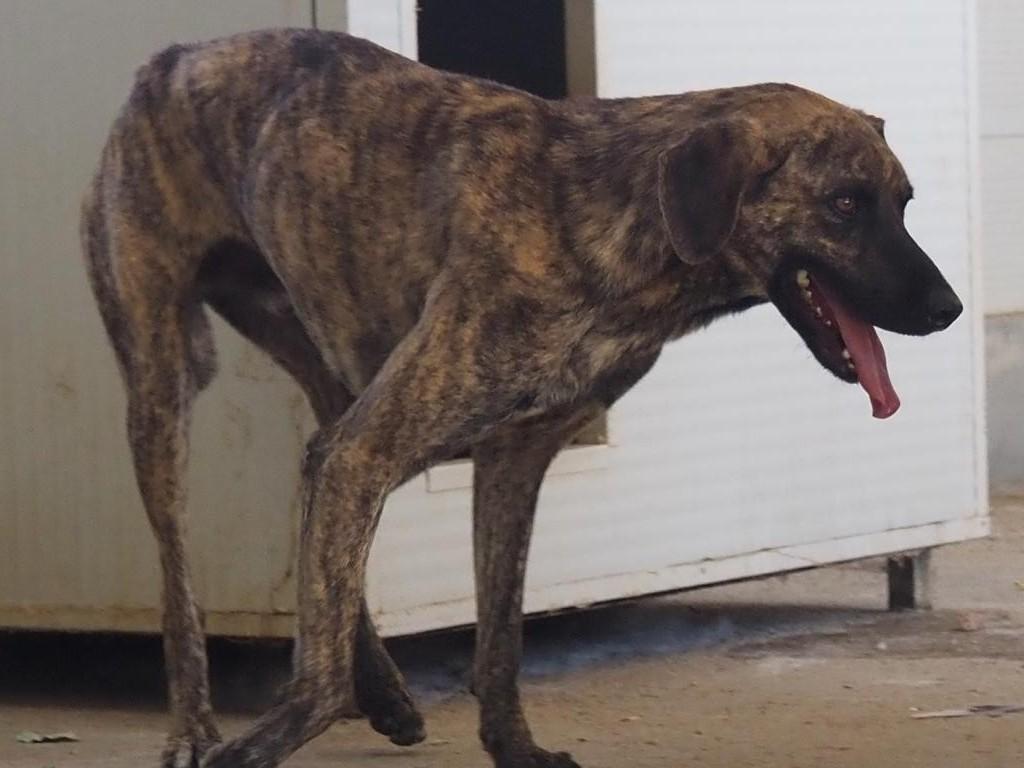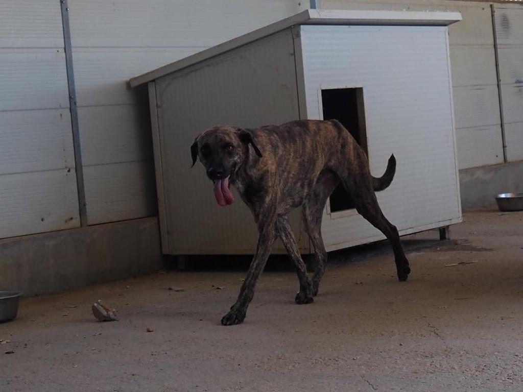 Nach wie vor versteckt er sich, wenn sich Besucher dem Gehege nähern, in seiner Hütte und wird daher auch immer übersehen. Dabei ist er ein wirklich bildschöner Segugio-Mix, der sich leider auch aus Langeweile ein paar Kilos zu viel angefuttert hat. Aber was soll ein junger Hund auch täglich machen in einem kleinen Gehege ohne jeden Auslauf?