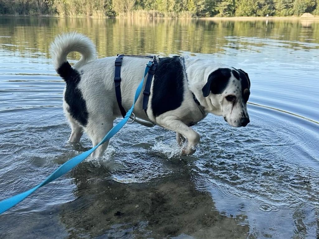 Er versteht sich großartig mit den anderen Hunden der Pflegestelle, begegnet auch den Pferden gelassen und zeigt dabei jeden Tag aufs Neue, welch feines Wesen in ihm steckt.