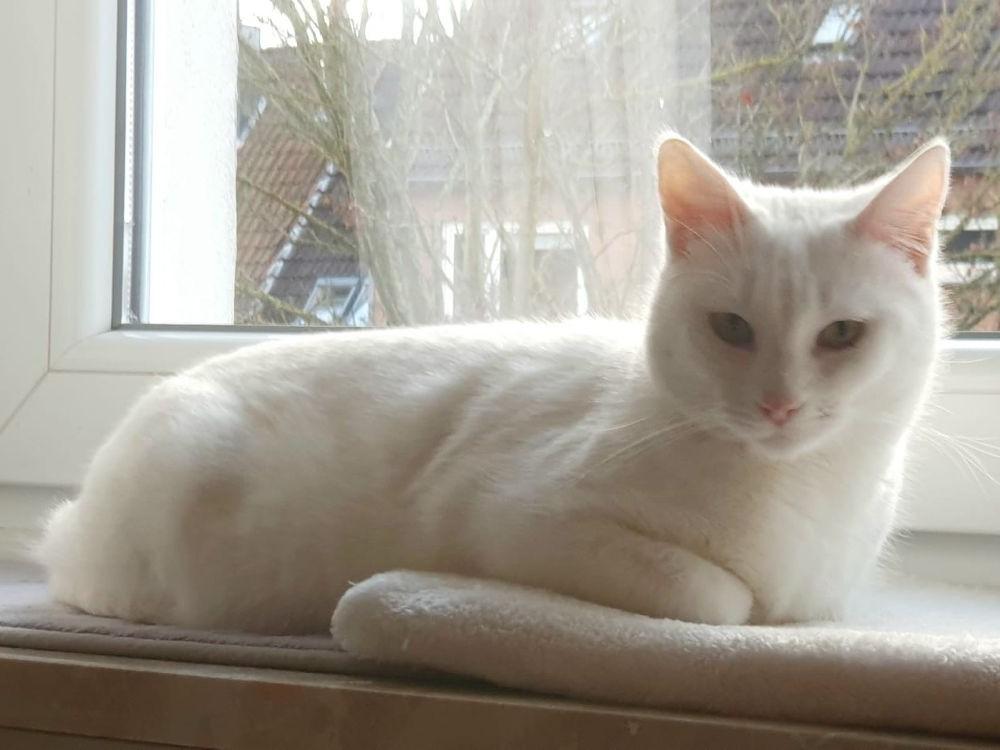 Weiße Katzen sind häufig besonders! Filippa könnte Ihre neue treue Begleiterin werden.