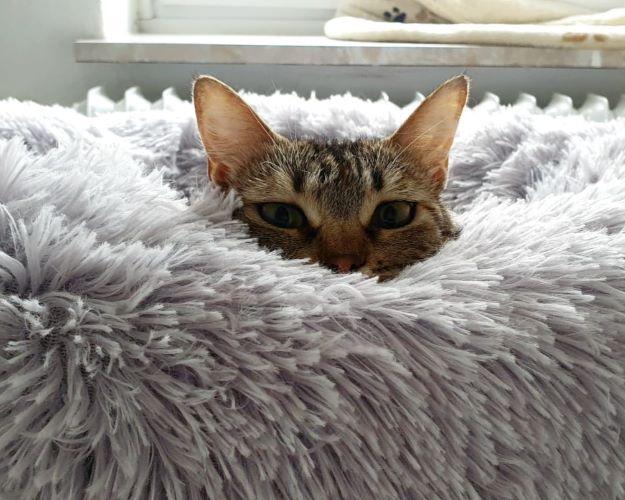 Nach den vielen Erlebnissen schläft es sich besonders gut im flauschigen Katzenbett – Erholung ist schließlich wichtig für die nächsten Abenteuer.