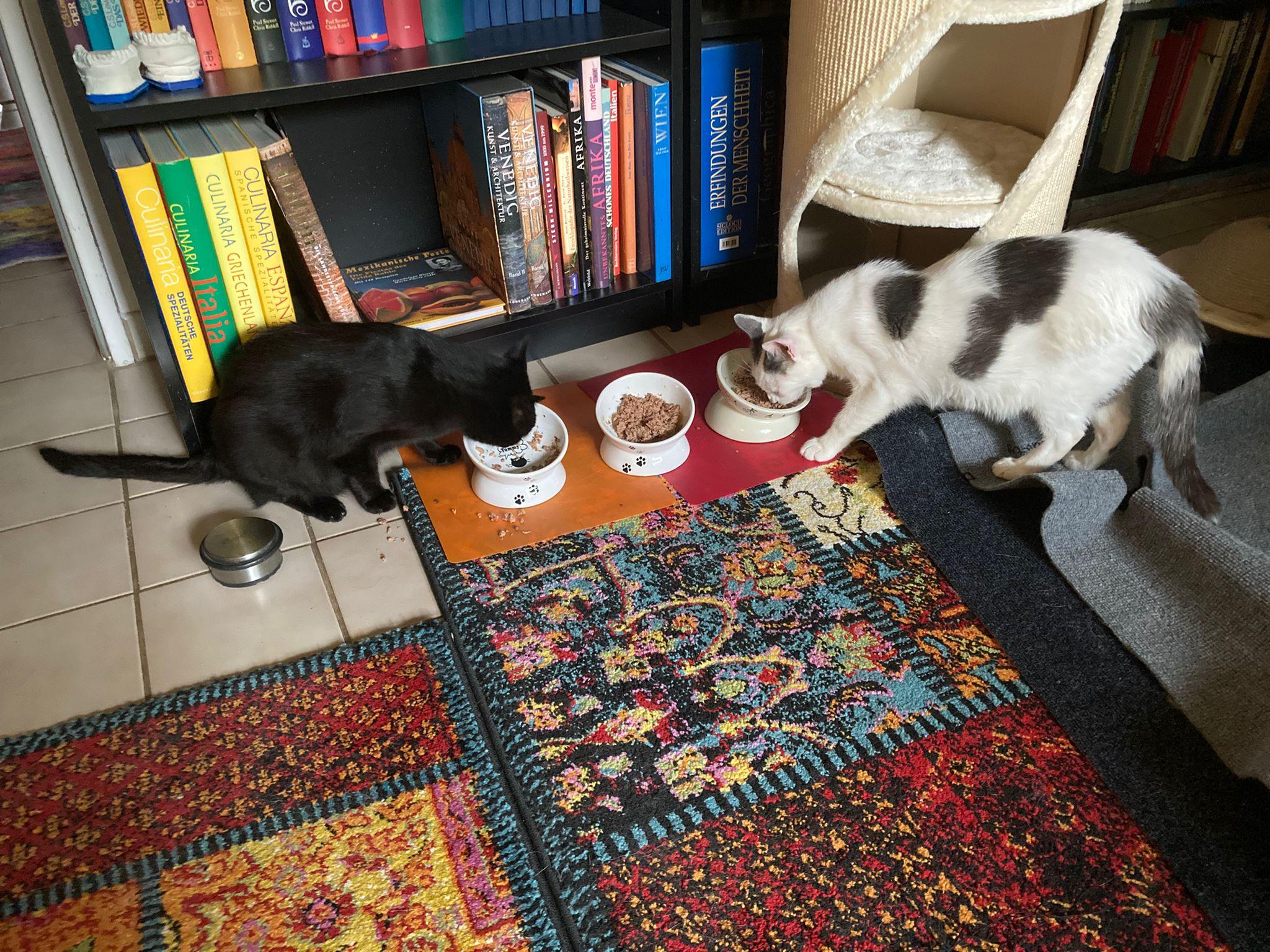 Mit dem Kater im Haushalt ist Leo gut befreundet und es gibt keine Reibereien. Leo ist dabei auch eine „coole Socke“, die jedem Streit aus dem Weg geht und die Spannungen gut beschwichtigen kann. Mit der schüchternen Kätzin im Hause versteht er sich ebenfalls blendend und es wird viel gemeinsam gespielt.
