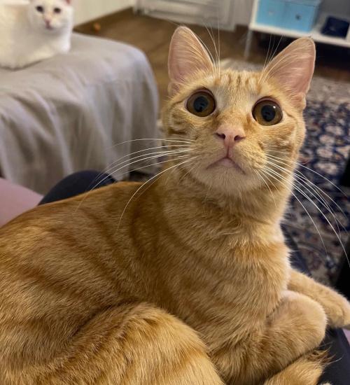 Mirko hat, wie fast alle roten Kater, ordentlich Pfeffer im Hintern und ist sehr verspielt und phantasievoll. Mit ihm wird es nie langweilig. Er steht gerne im Mittelpunkt und kommt immer sehr schnell angelaufen, wenn Maurizio mal eine Extra-Kuscheleinheit von seiner Pflegemama bekommt. Er achtet sehr darauf, dass er niemals zu kurz kommt.