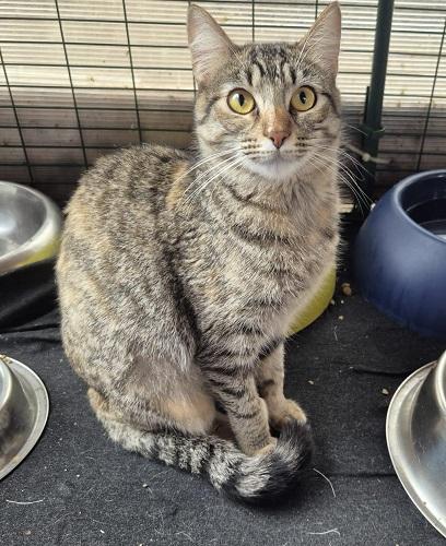 Noch lebt sie in einem kleinen Käfig, doch sie sehnt sich sehr danach, endlich wieder Katzenkind zu sein: rennen, toben, klettern, in der Sonne liegen und einfach das Leben genießen. Tigrottina wünscht sich ein Zuhause, in dem sie nicht alleine ist. Darum suchen wir für sie ein Zuhause, in dem bereits ein gleichaltriger Katzenfreund auf sie wartet. Gerne bringt sie auch direkt eine Freundin oder einen Freund aus dem Tierheim mit.