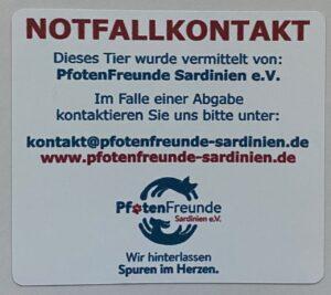 Um sicherzustellen, dass jedes unserer Tiere schnell Hilfe erhält, versehen wir ab sofort die EU-Heimtierausweise unserer Schützlinge mit einem kleinen Aufkleber auf der Innenseite des Deckblattes.
